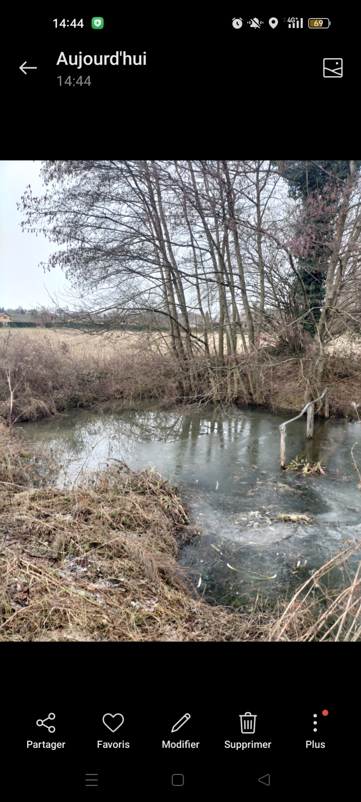 Cette mare se situe dans un champ agricole. elle est en très mauvaise état et est laissée en jachère ! Elle est le point le plus bas d'un grand fossé et continue sont chemin dans une buse puis un bief long de 3 km pour ensuite se jeter dans le bief de NAVON. En été, on peut observer des batraciens, libellules et pleins d'autres insectes ! On observe également la presence de sentier d'animaux ce qui prouve que les animaux viennent boire dans celle-ci !