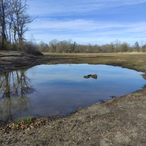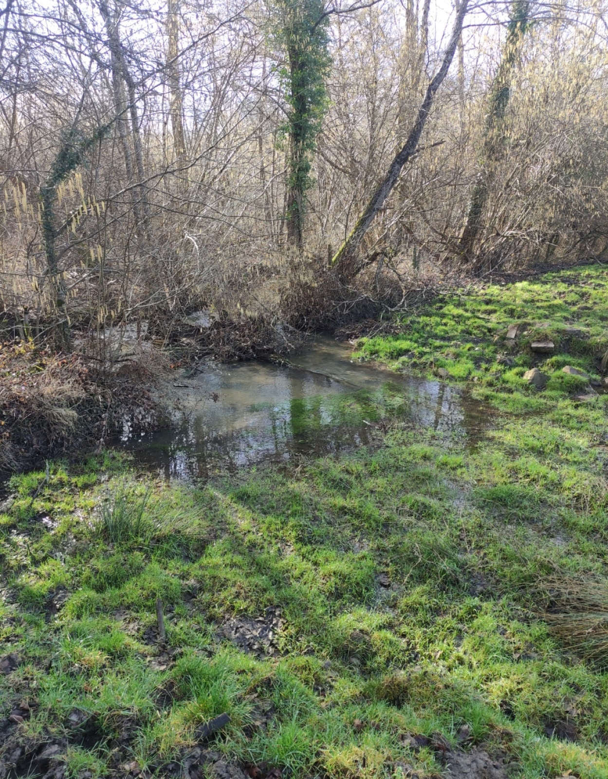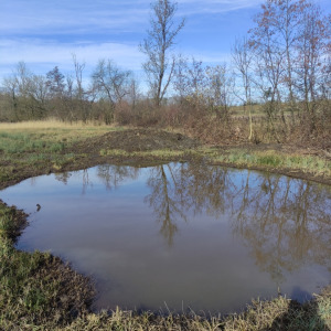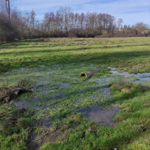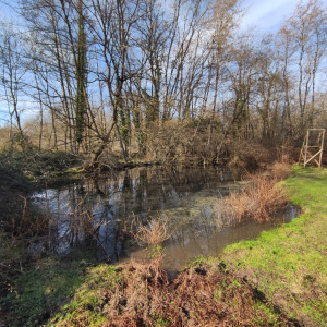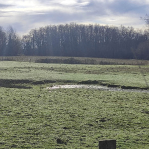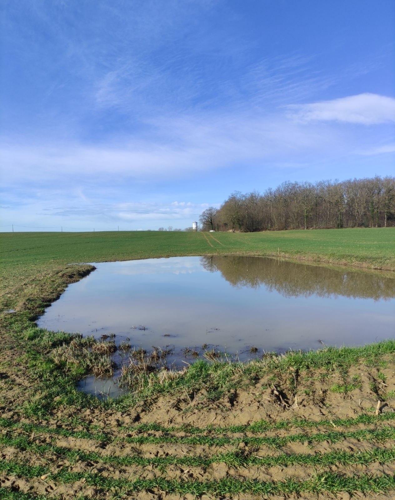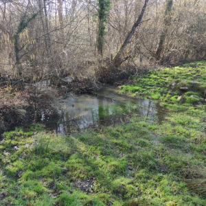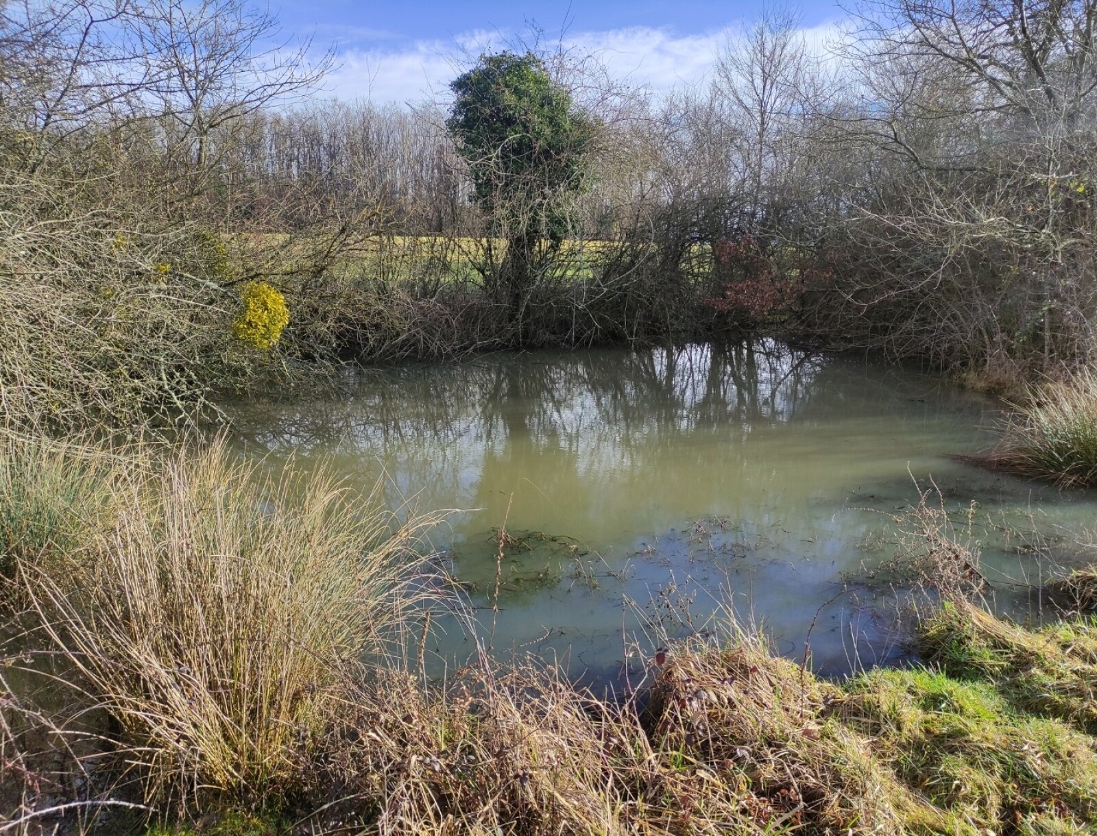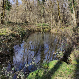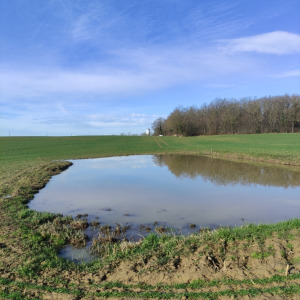 Cette mare se situe dans un champ agricole. elle est en très mauvaise état et est laissée en jachère ! Elle est le point le plus bas d'un grand fossé et continue sont chemin dans une buse puis un bief long de 3 km pour ensuite se jeter dans le bief de NAVON. En été, on peut observer des batraciens, libellules et pleins d'autres insectes ! On observe également la presence de sentier d'animaux ce qui prouve que les animaux viennent boire dans celle-ci !