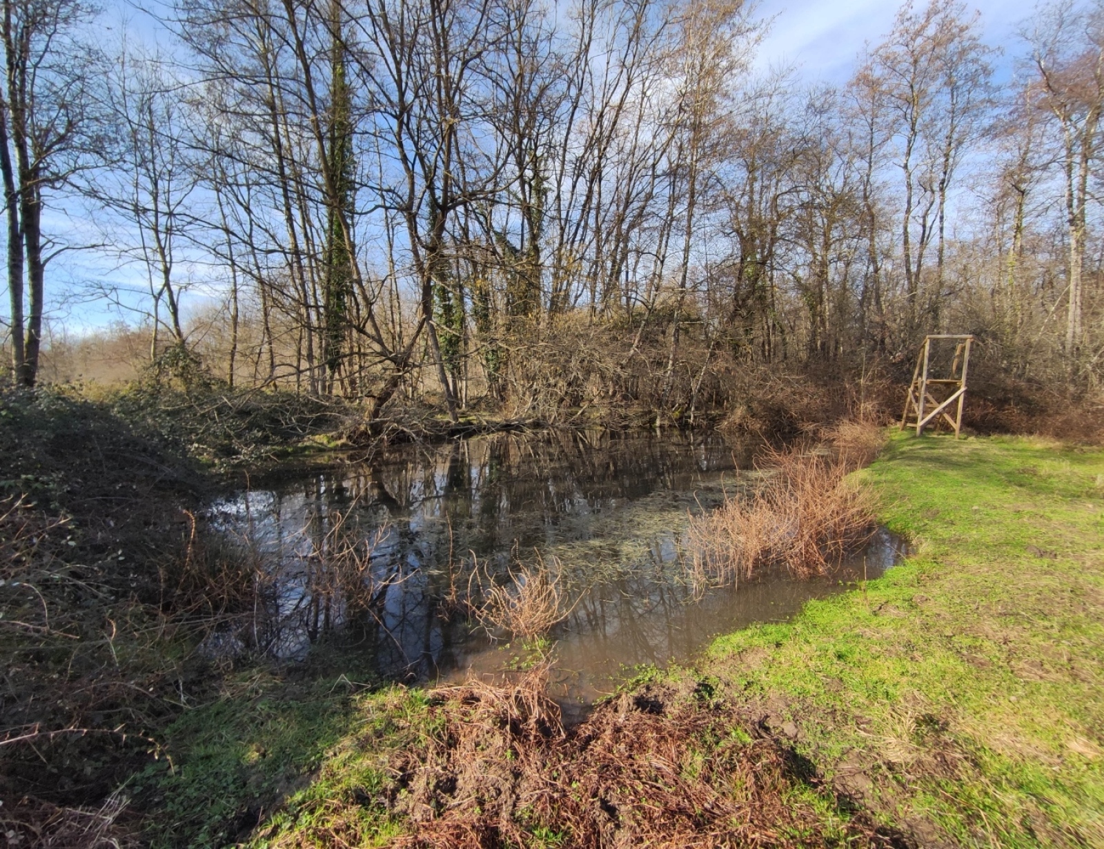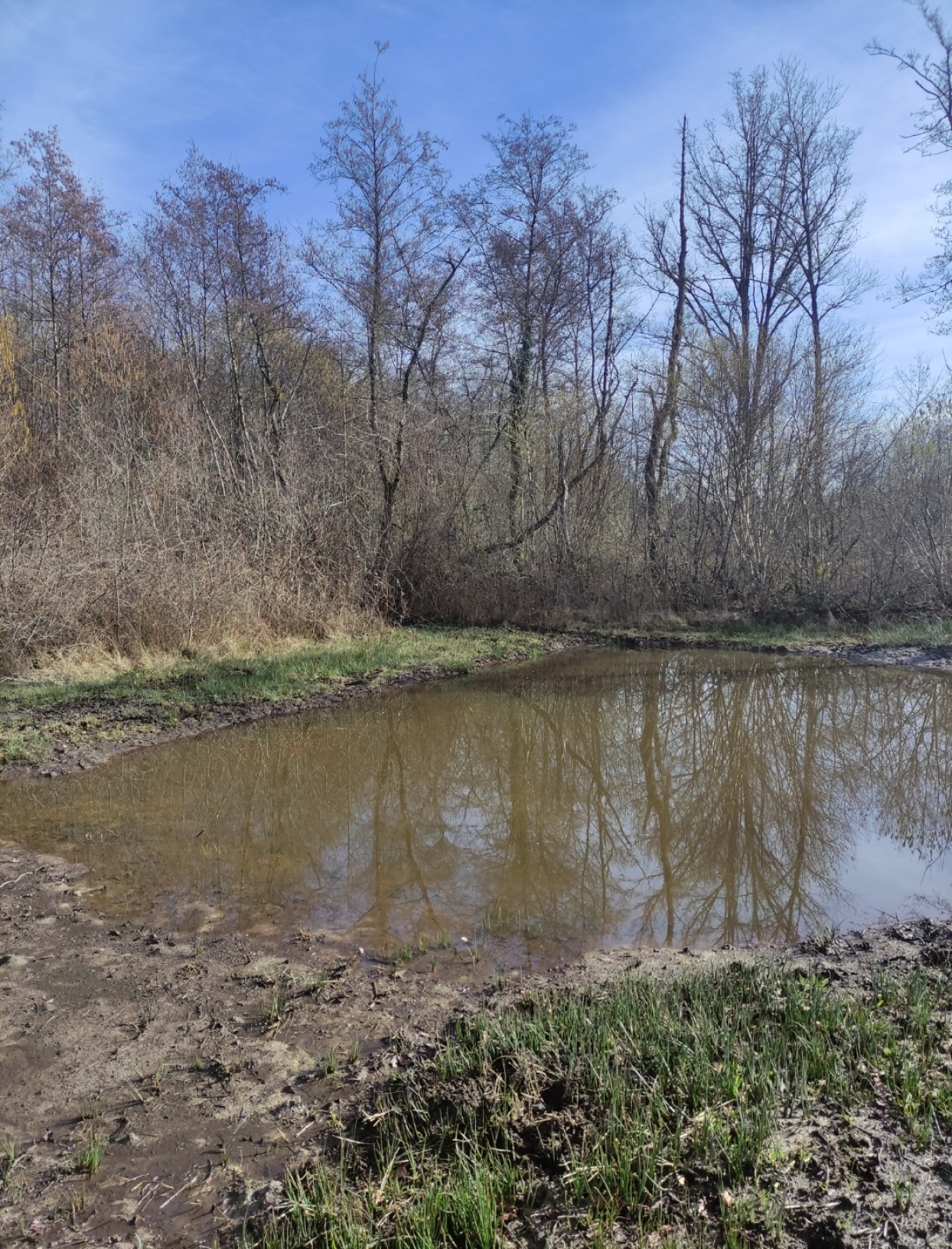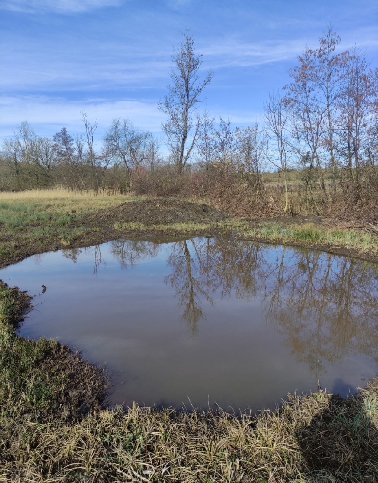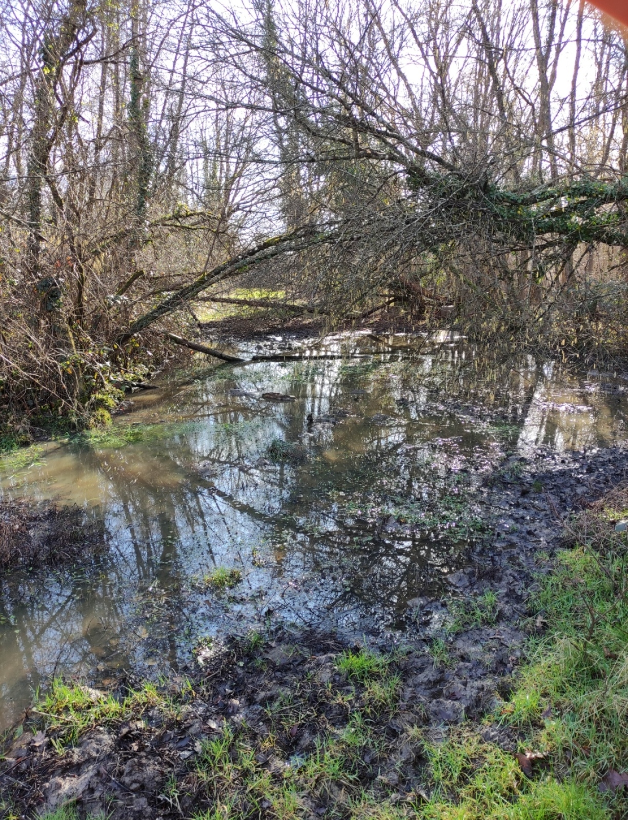 Cette mare se situe dans un champ agricole. elle est en très mauvaise état et est laissée en jachère ! Elle est le point le plus bas d'un grand fossé et continue sont chemin dans une buse puis un bief long de 3 km pour ensuite se jeter dans le bief de NAVON. En été, on peut observer des batraciens, libellules et pleins d'autres insectes ! On observe également la presence de sentier d'animaux ce qui prouve que les animaux viennent boire dans celle-ci !