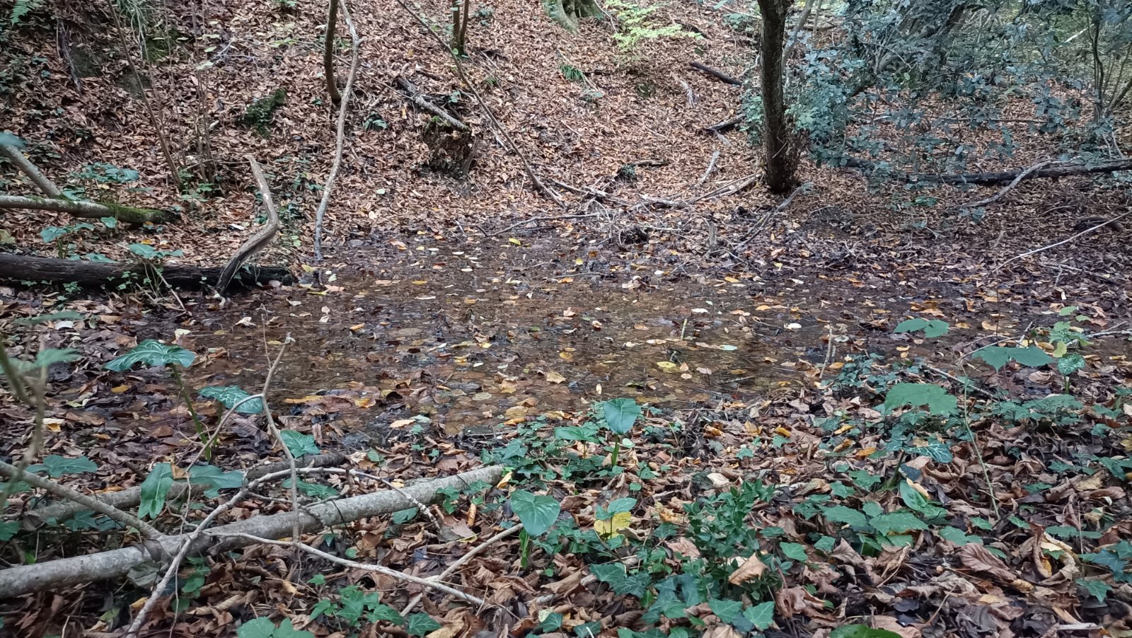 Mare devant ma maison, dans une vielle baignoire . Mise en eau + plantes + 3 poissons rouges : mars 2025