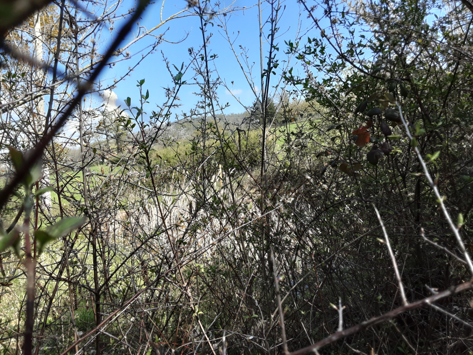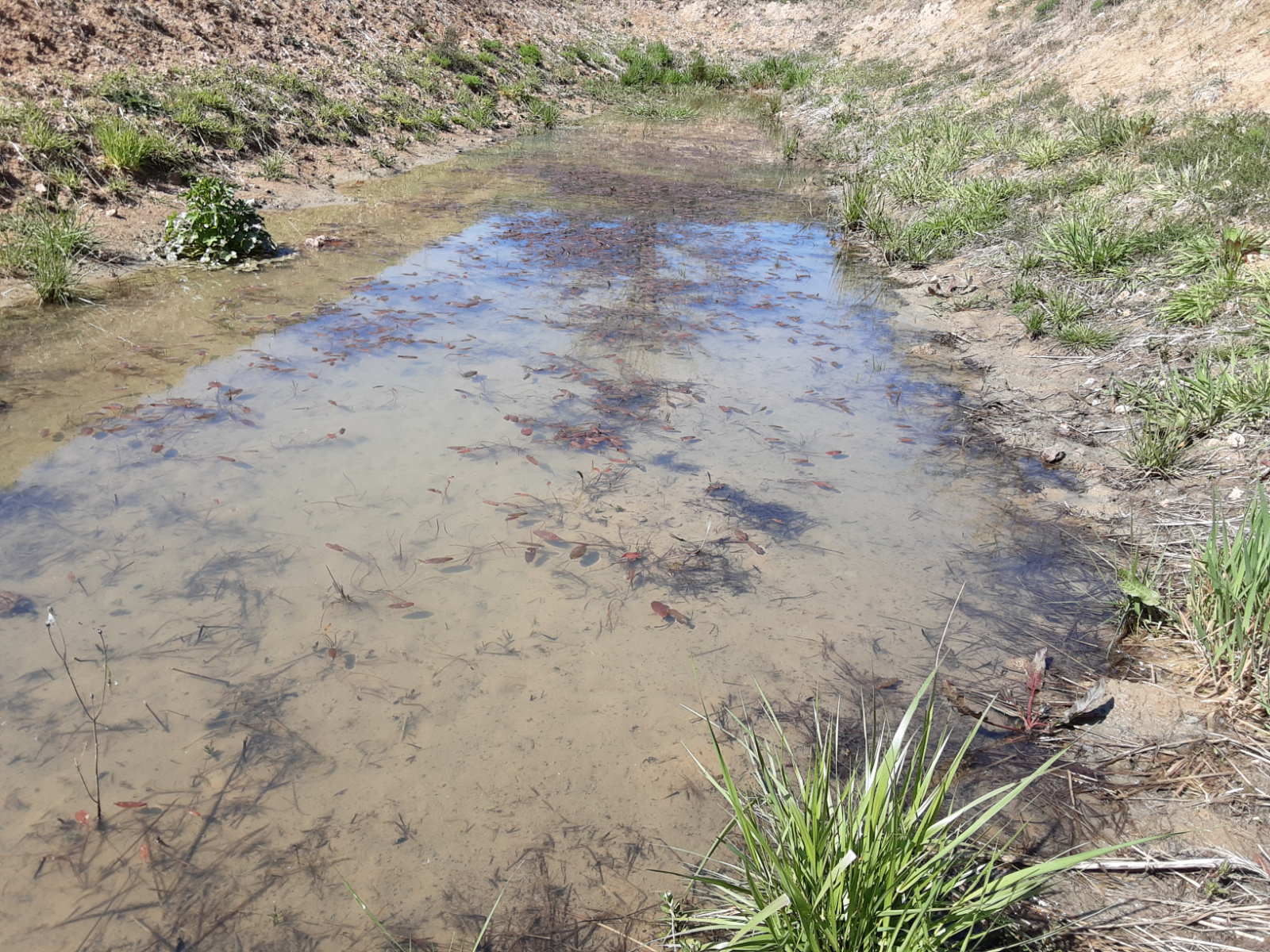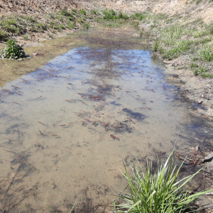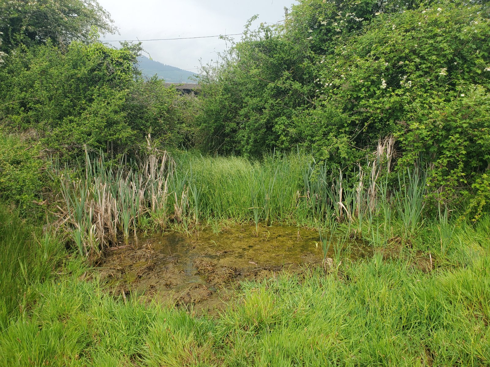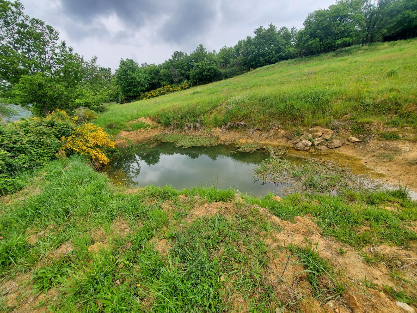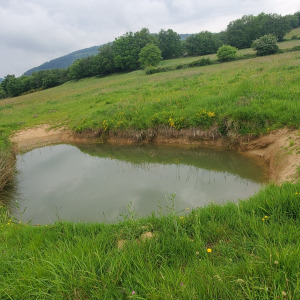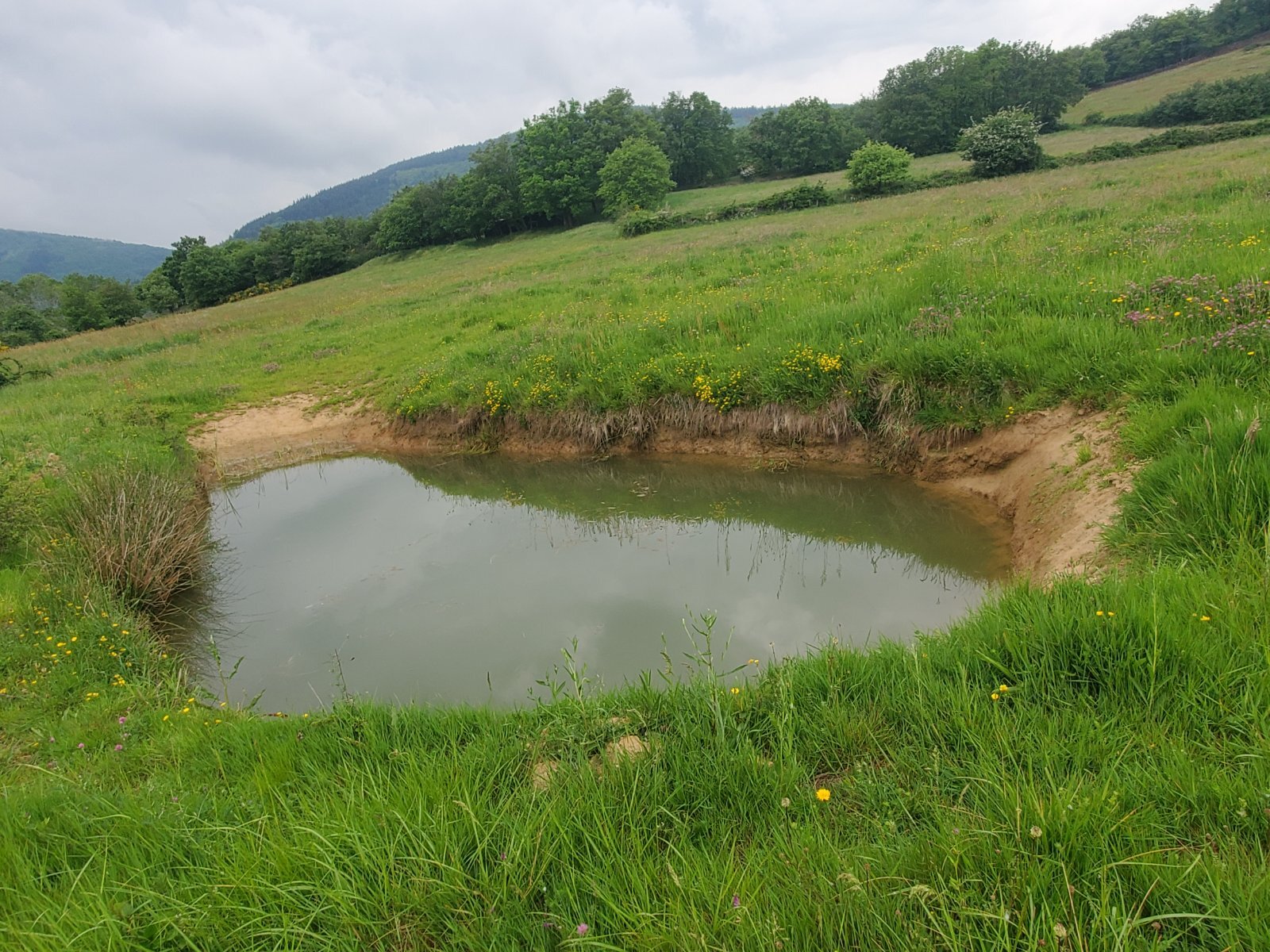 Petite mare entourée de buissons, ouverture sur un côté sur 2,5m