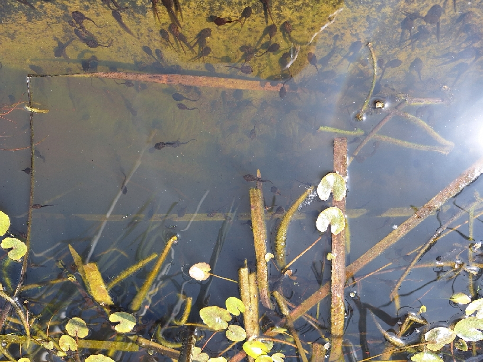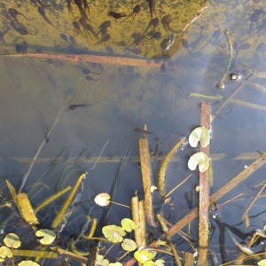 Mare forestière avec une grosse souille à sanglier et des aménagements cynégétiques