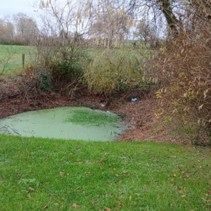 Mare située dans le marais de Bovinens, recreusée en octobre 2025 par le Syr'Usses. Constituée d'une ceinture d'eau libre, de 1m de profondeur environ, et d'un ilôt composé d'un fourré de saules. Mare localisée en contexte agricole (arboriculture proche et prairies cultivées).