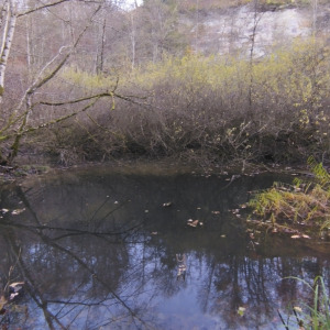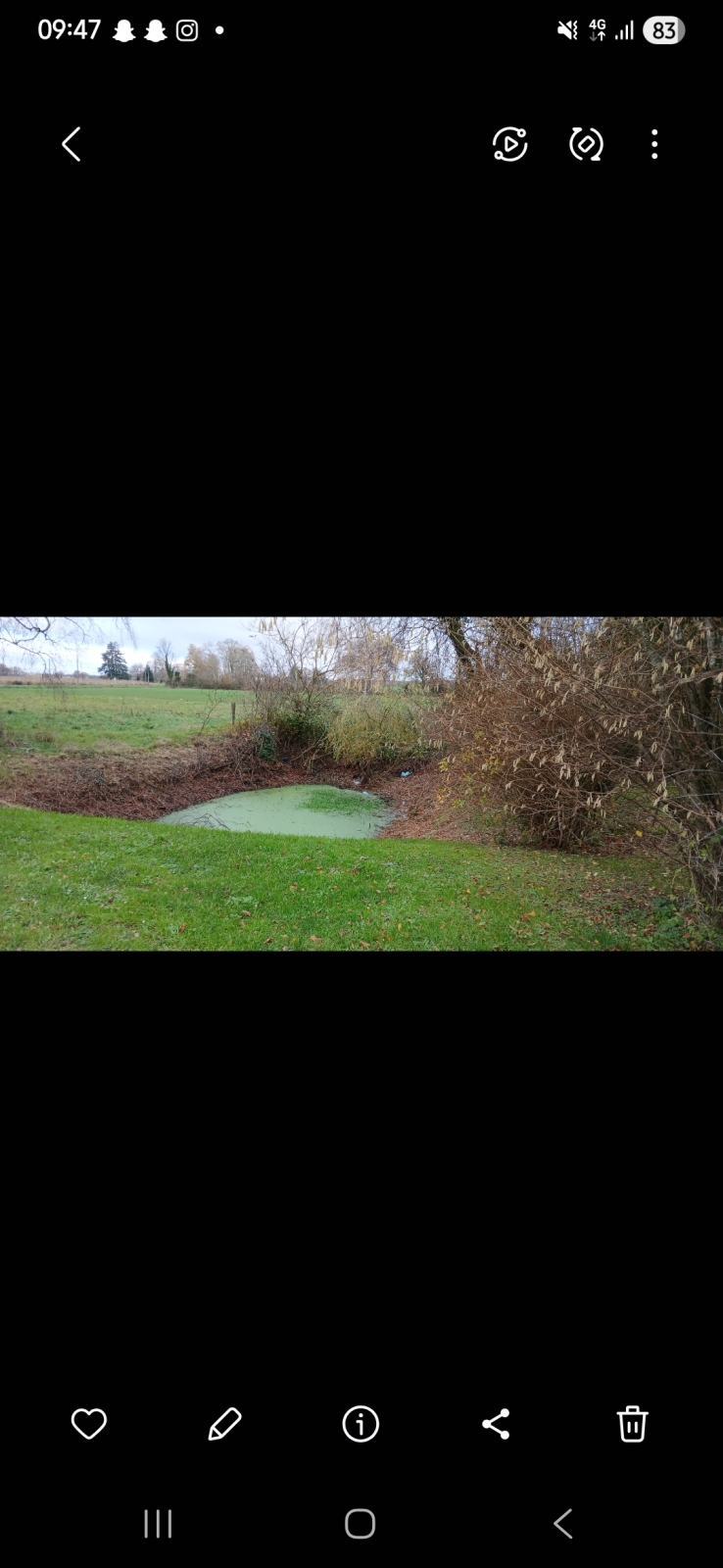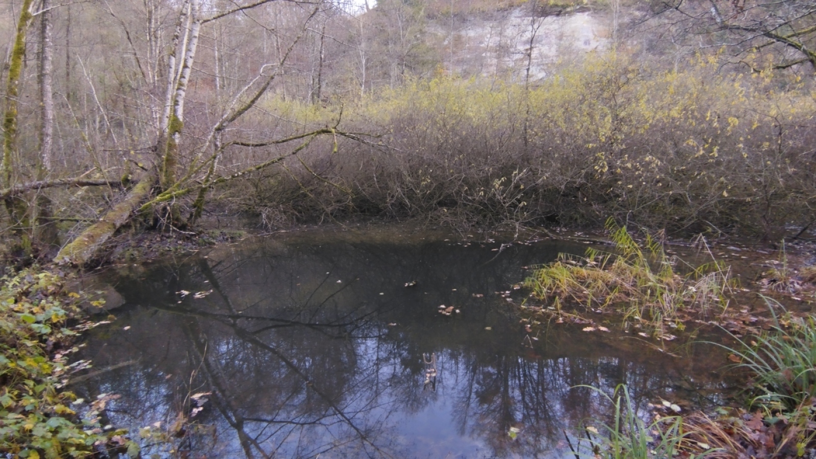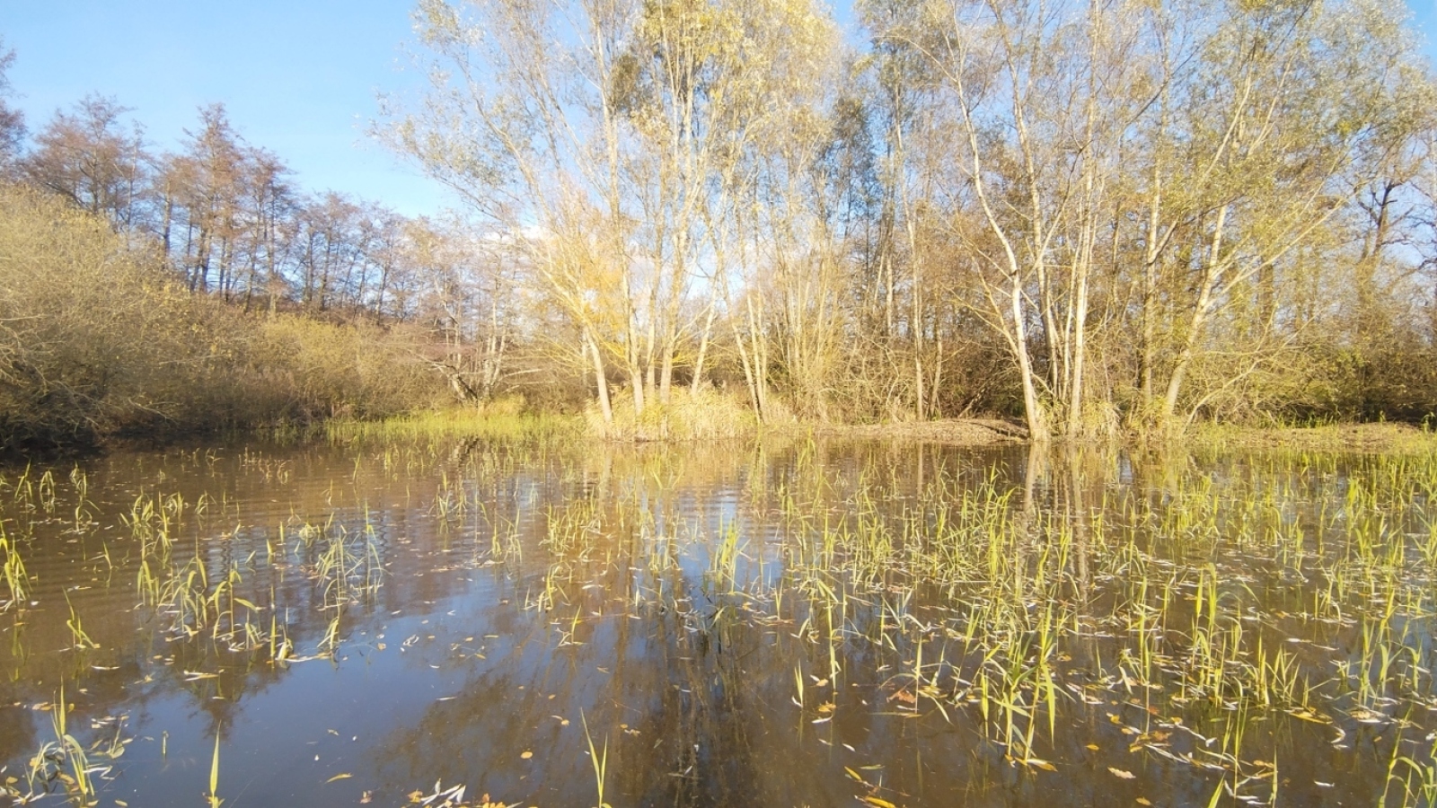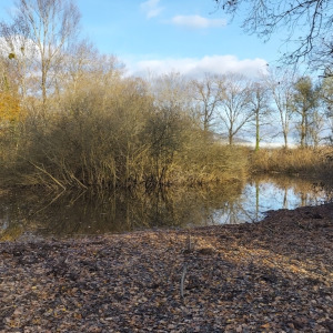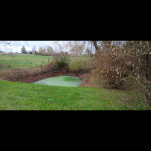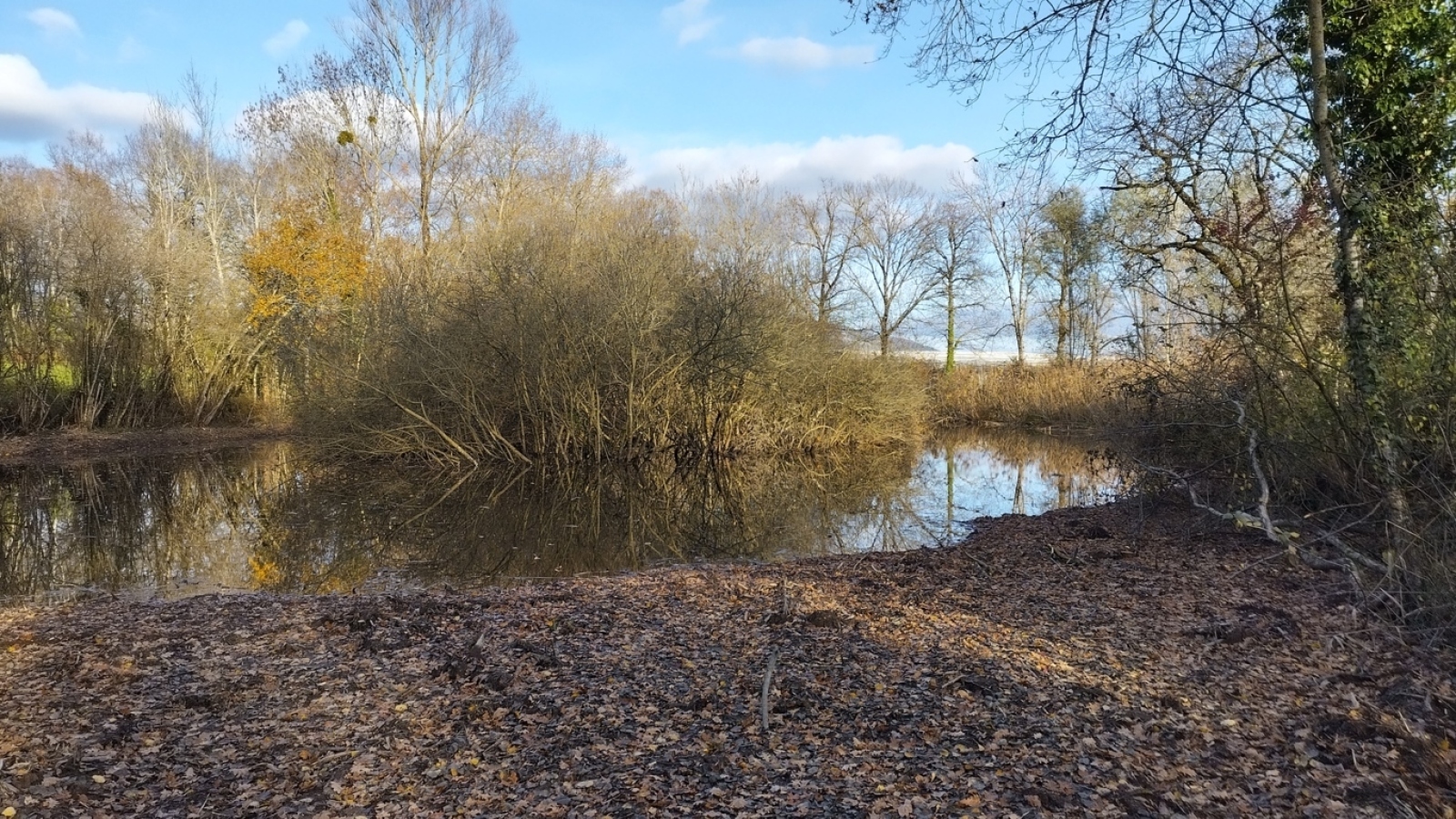 Mare creusée en 2025 par le Syr'Usses au sein d'une roselière inondée une partie de l'année et gérée depuis 2024 (réouverture par bucheronnage et broyage avec exportation)