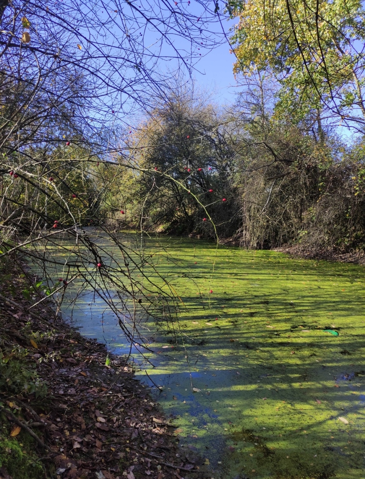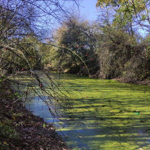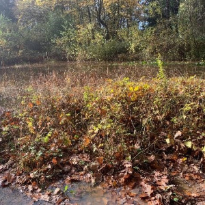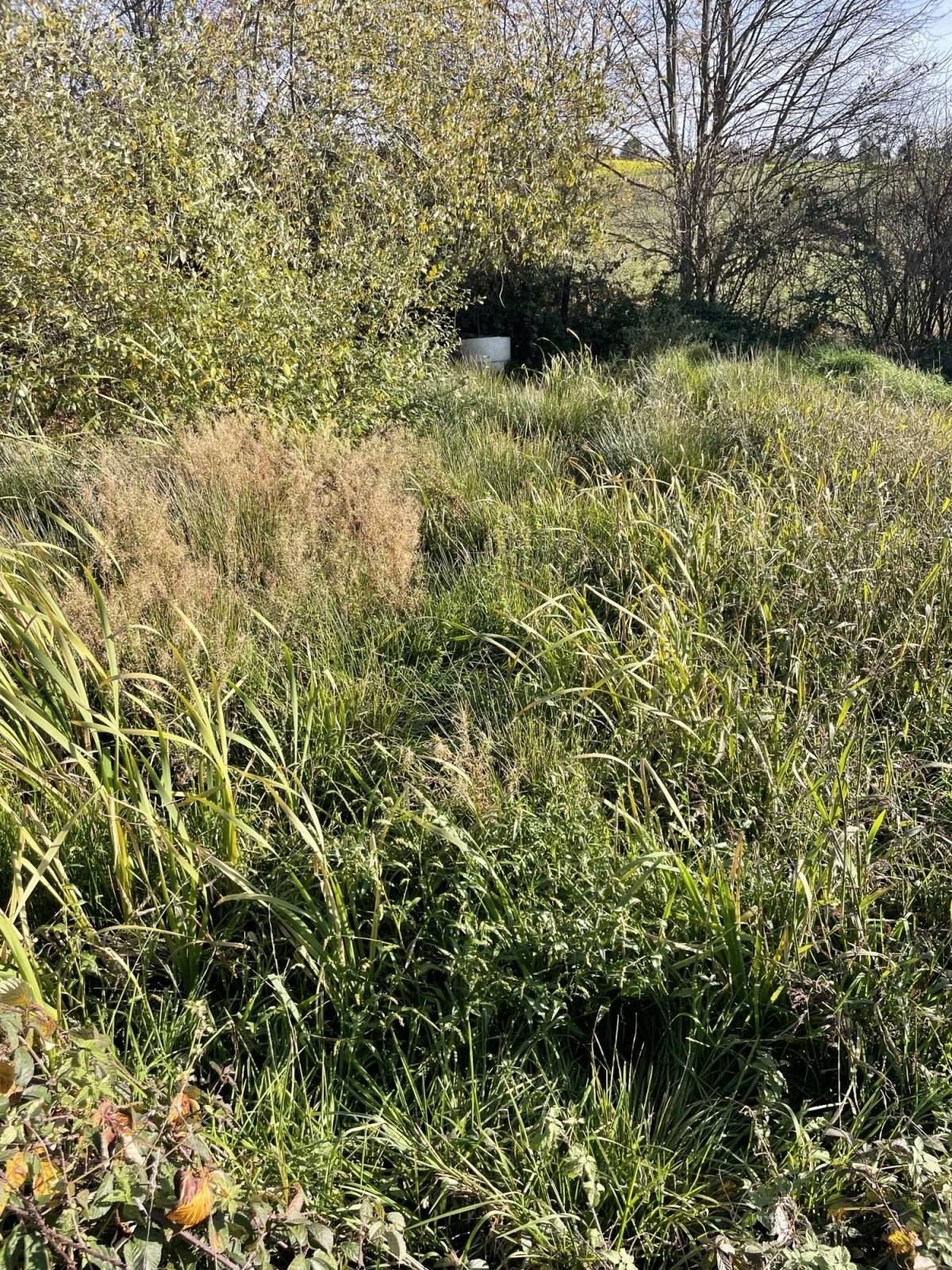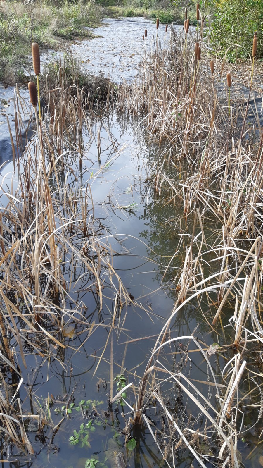 Dernière partie d'eau libre, quasiment comblée par les déchets verts et le remblai