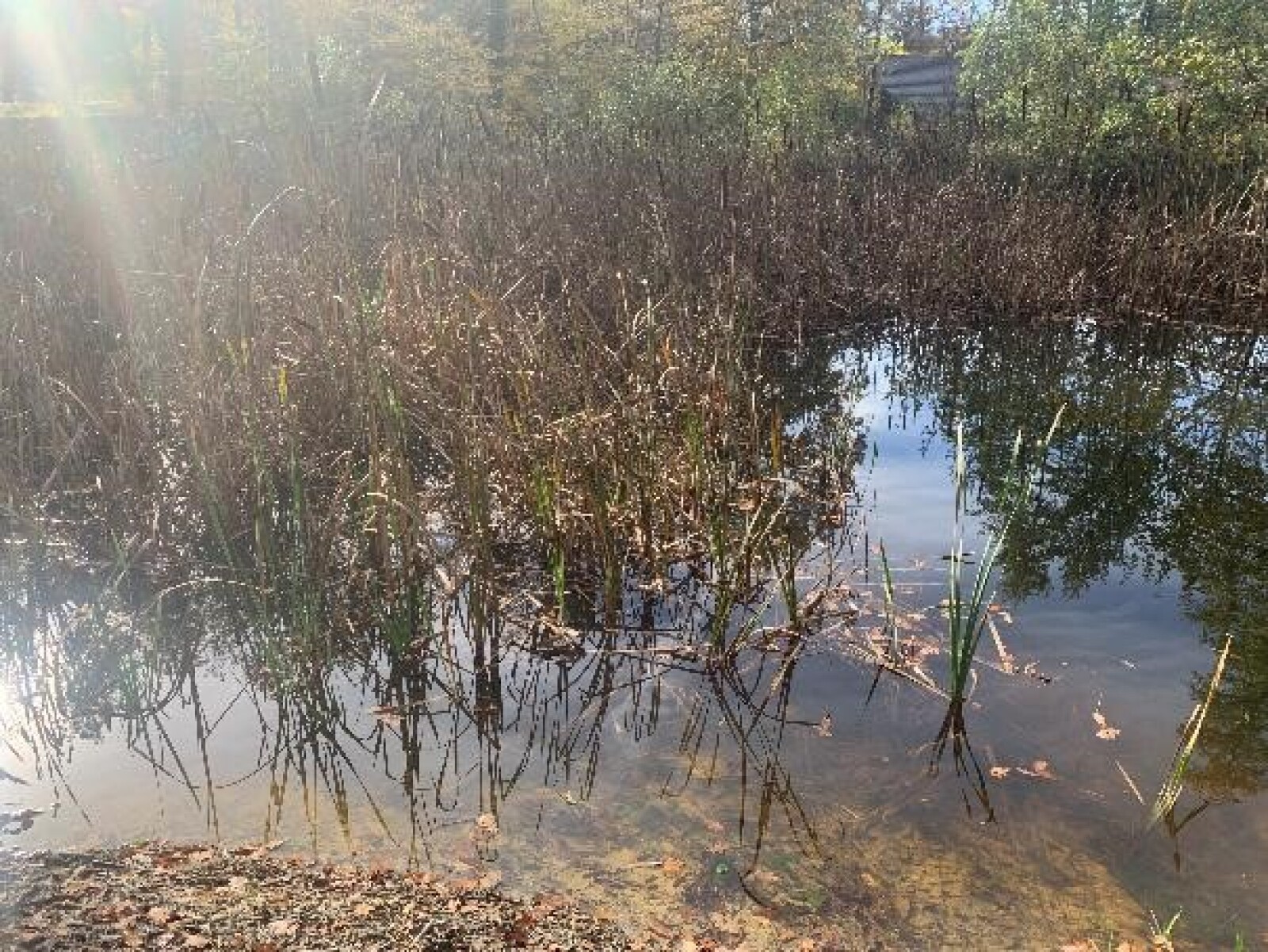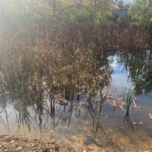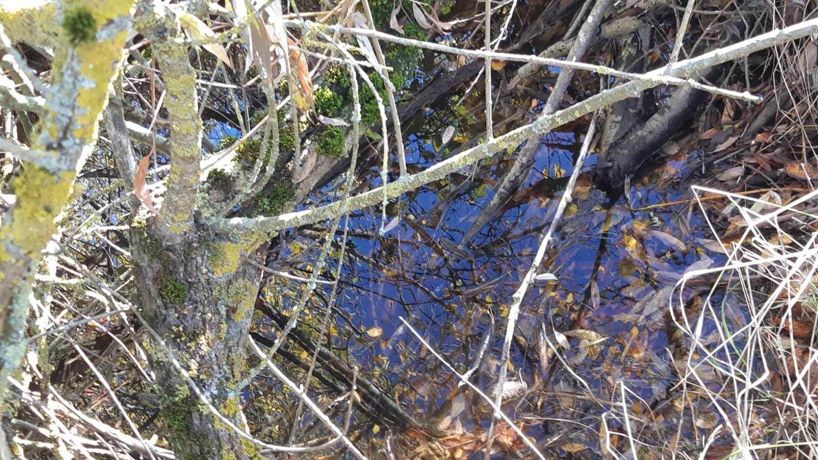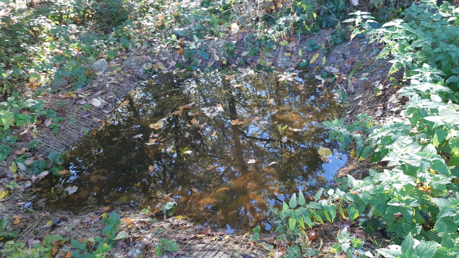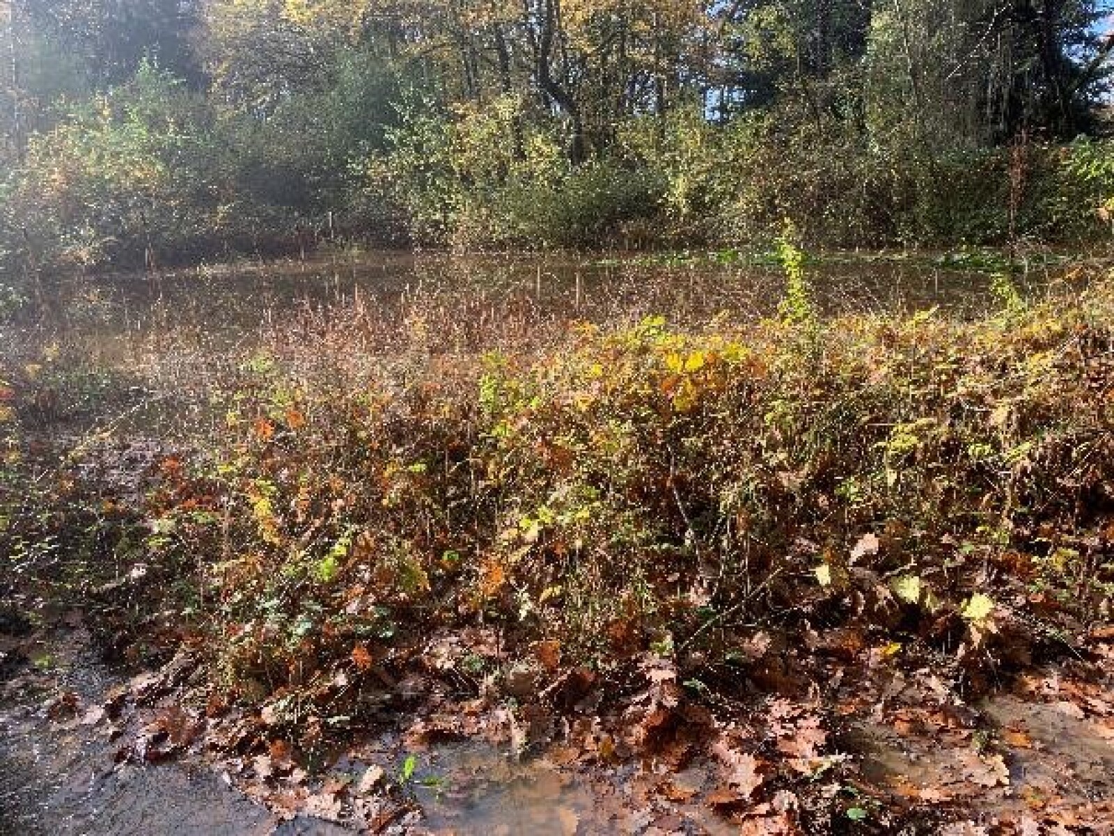 Dernière partie d'eau libre, quasiment comblée par les déchets verts et le remblai