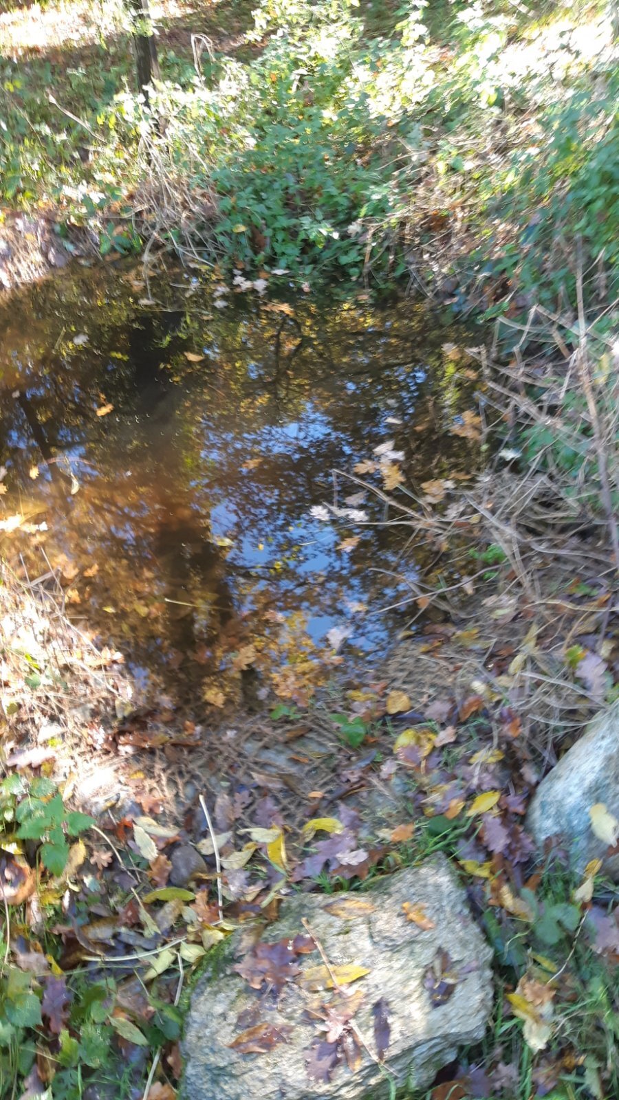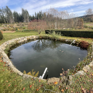 Tuyau déversant l'eau de la mare dans celle située en dessous