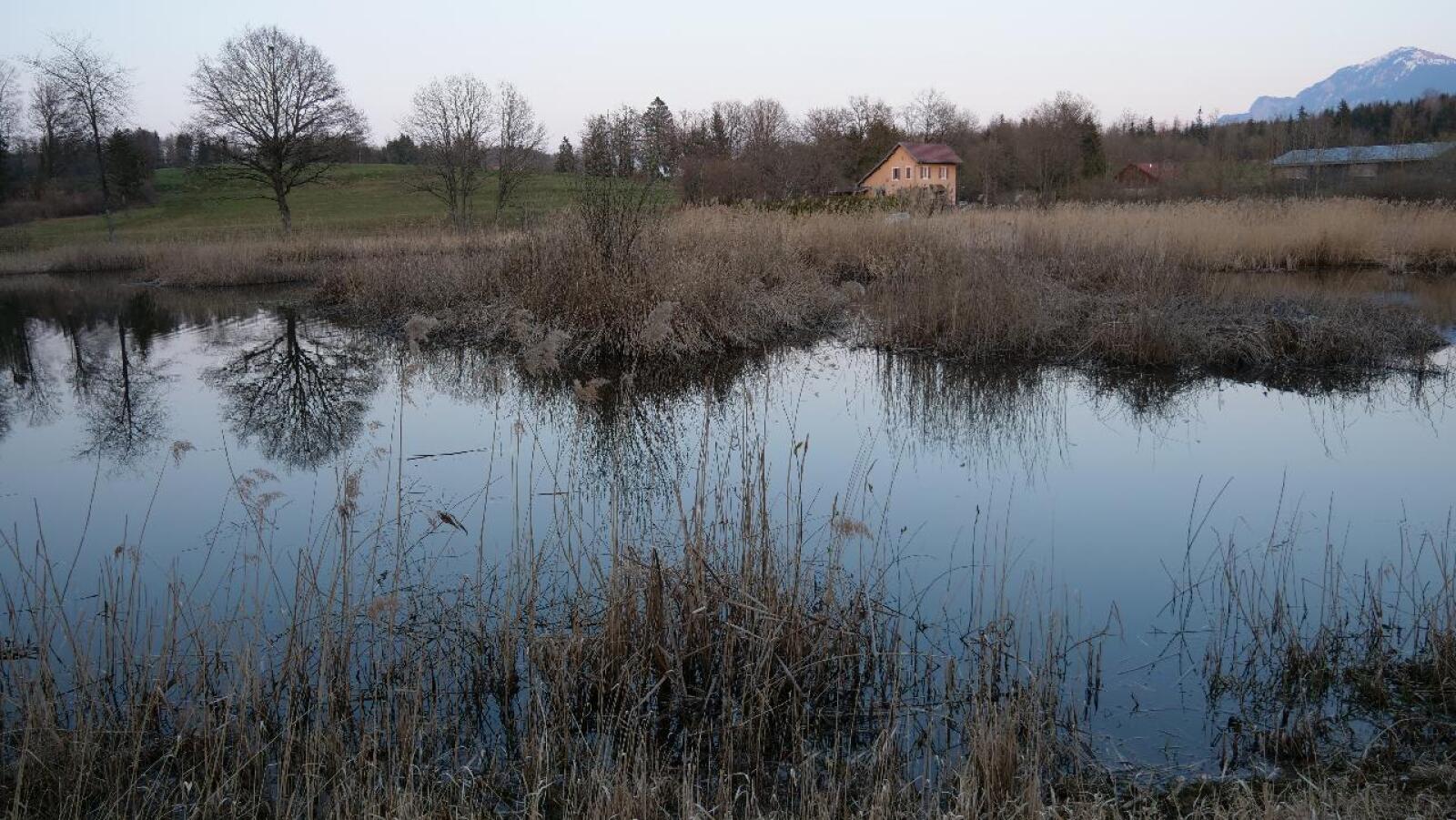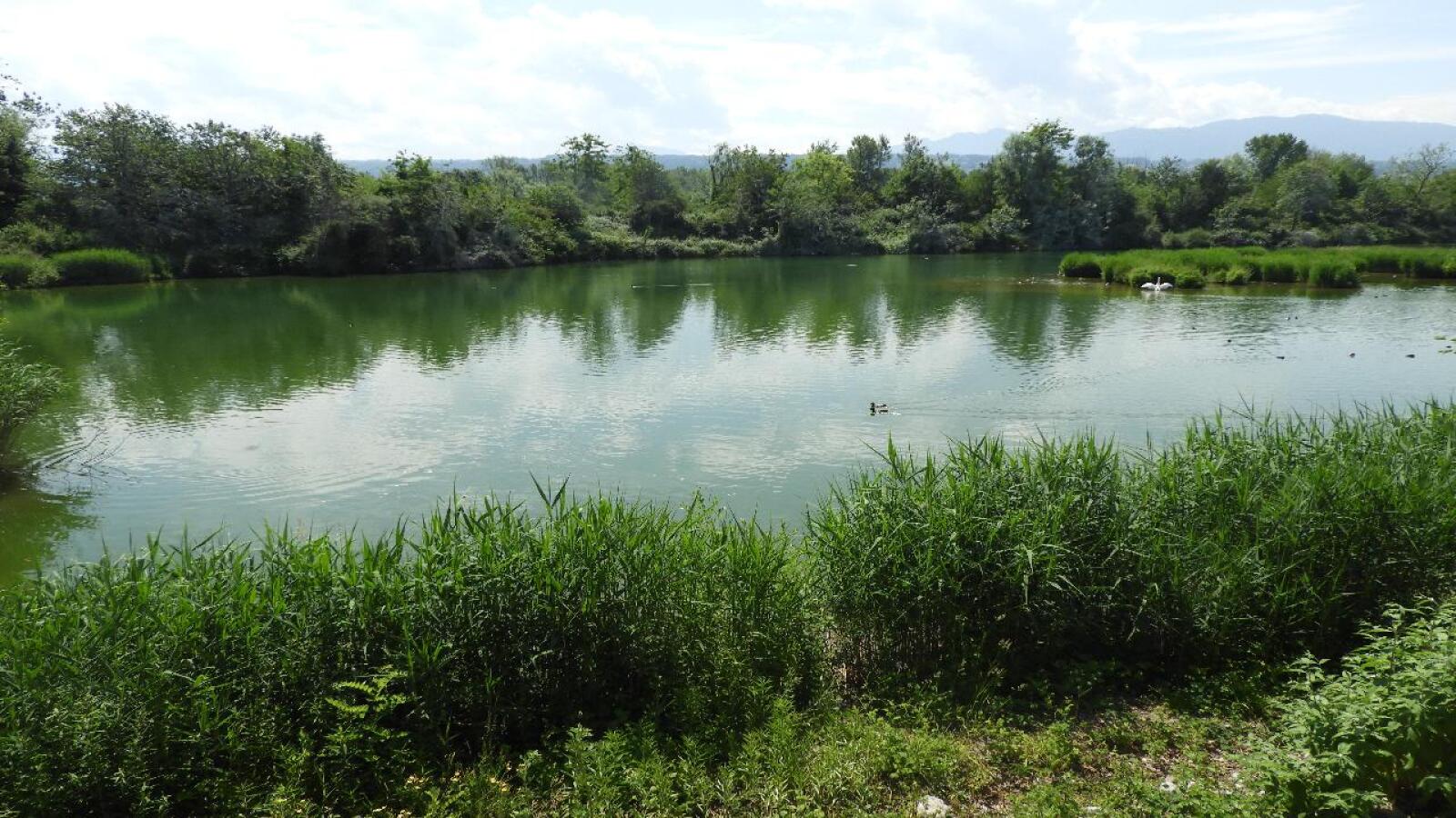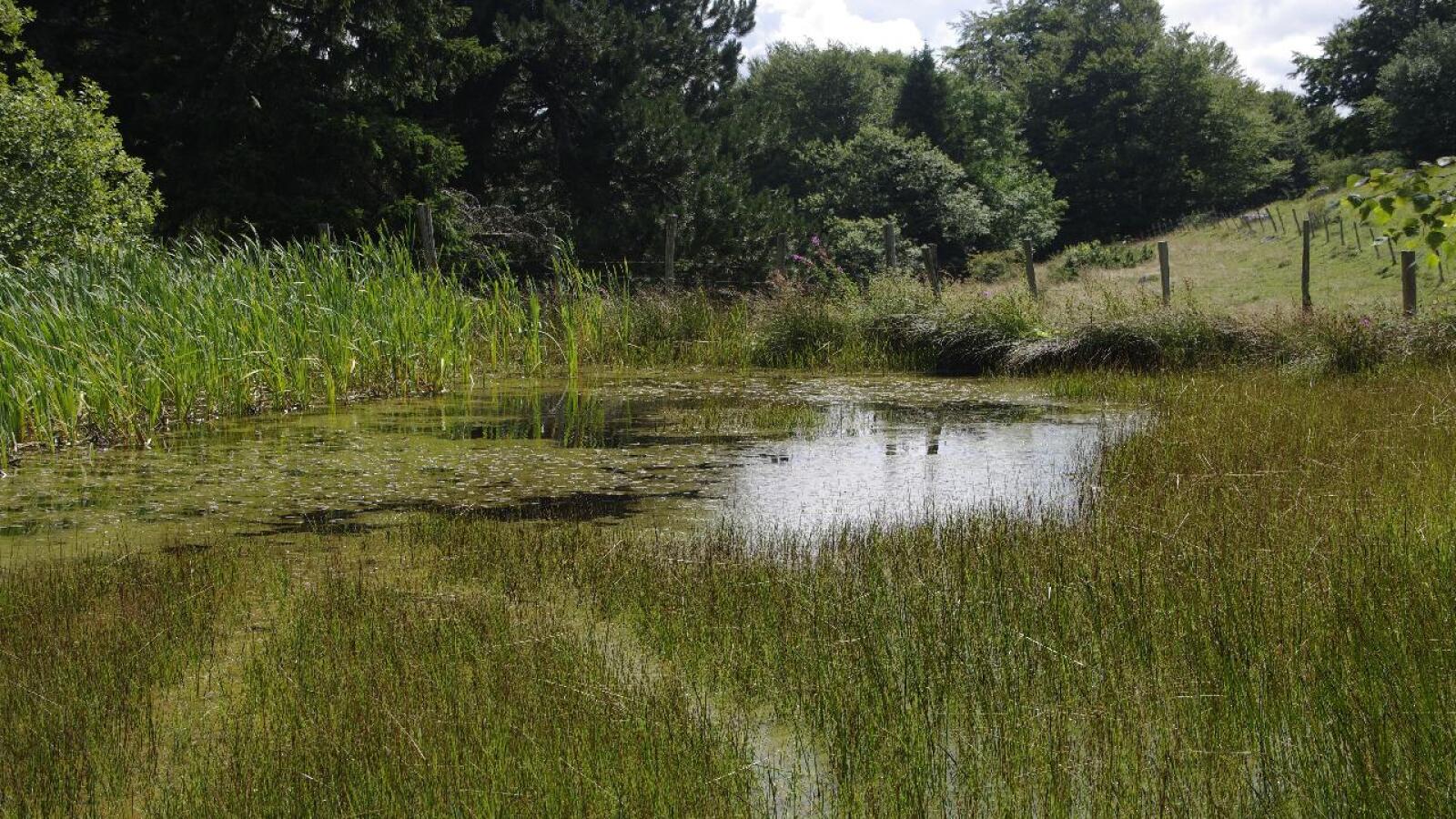 Mare située dans le marais de Bovinens, creusée en 2025 par le Syr'Usses dans un marais en partie submergé.