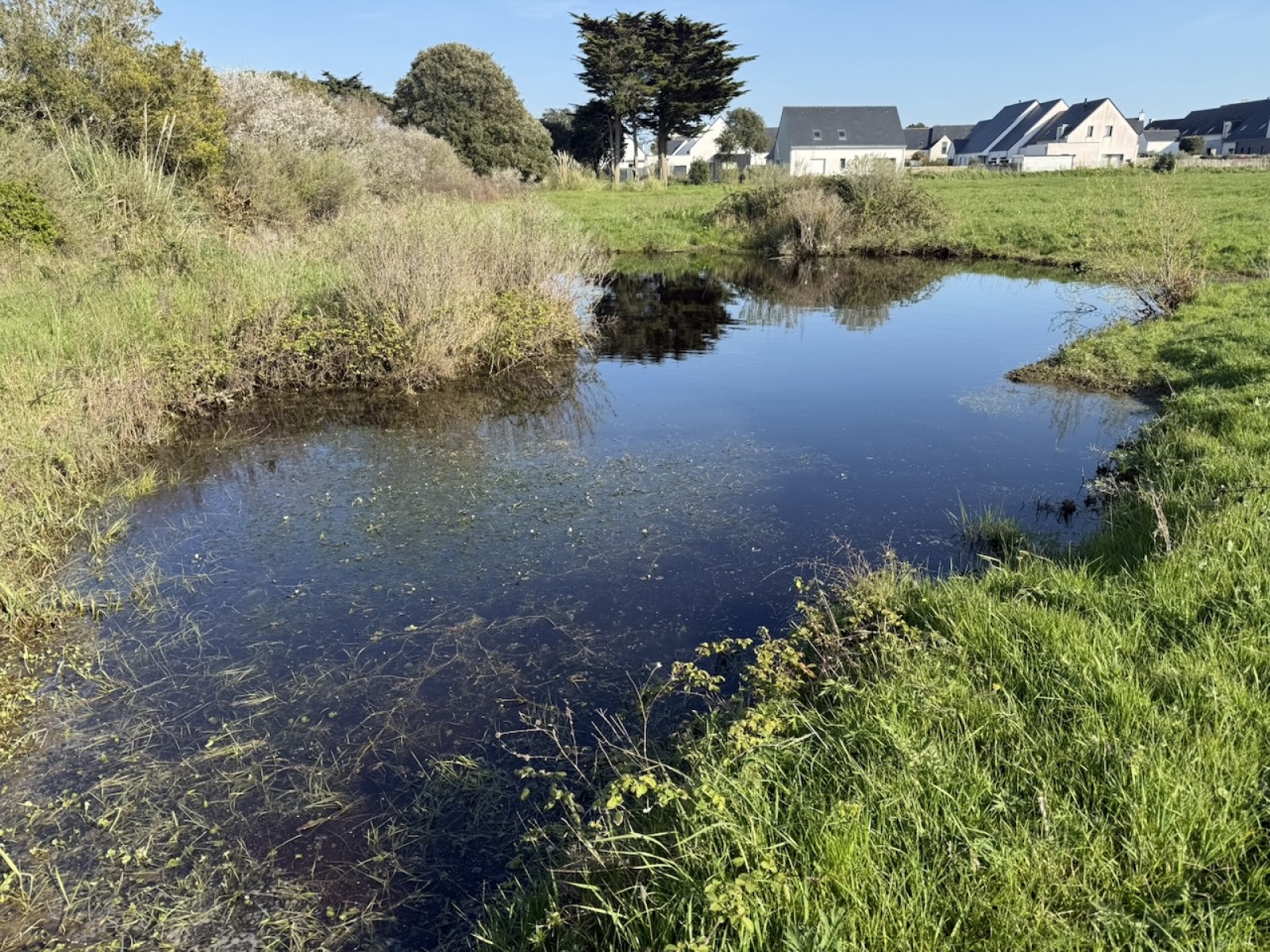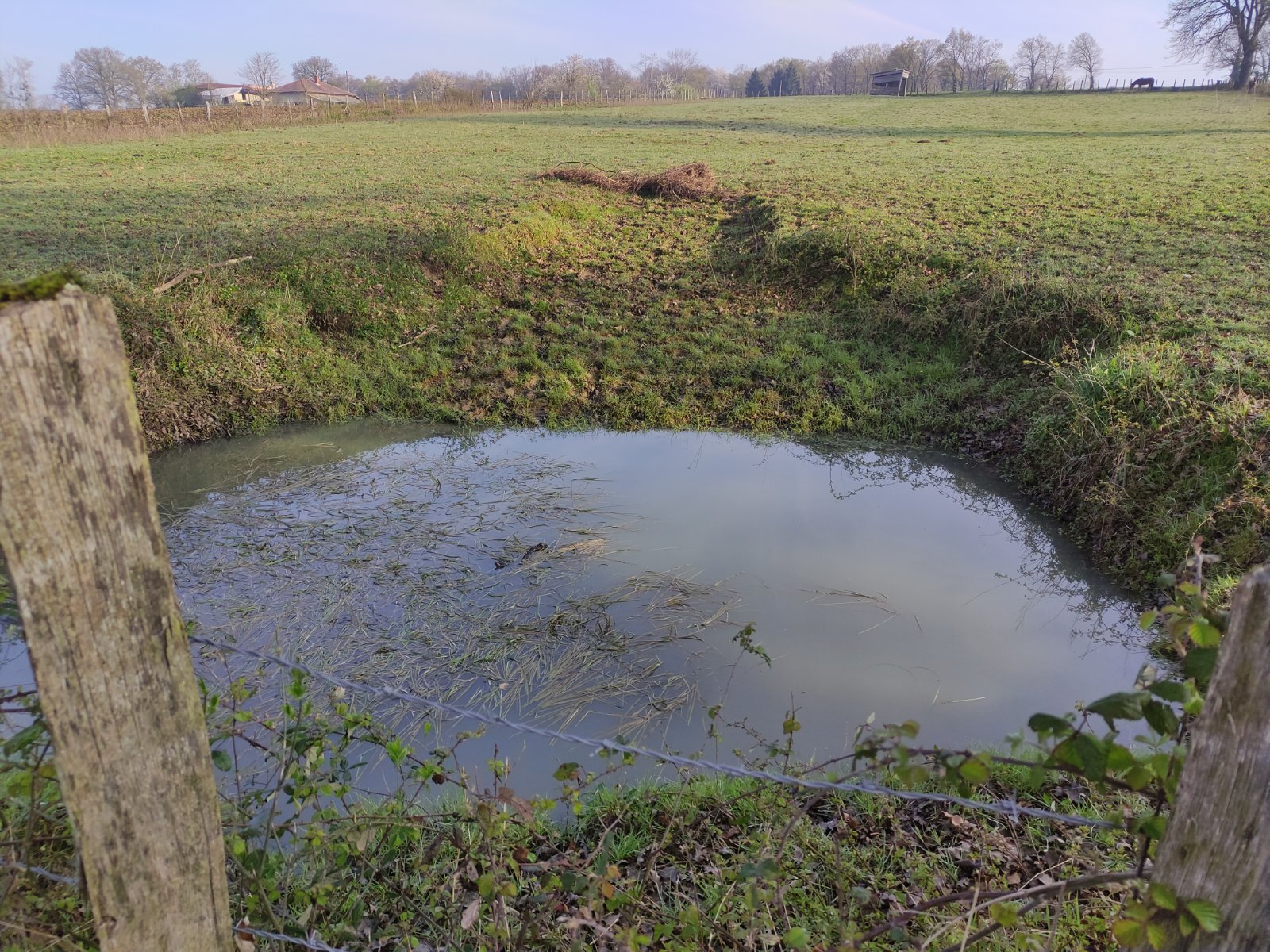 Mare artificielle de 3m² que nous avons creusé dans le jardin (bache pvc), alimentée par le toit de la cabane de jardin. Grenouilles, crapauds, libellules, dytiques, salamandres, couleuvres