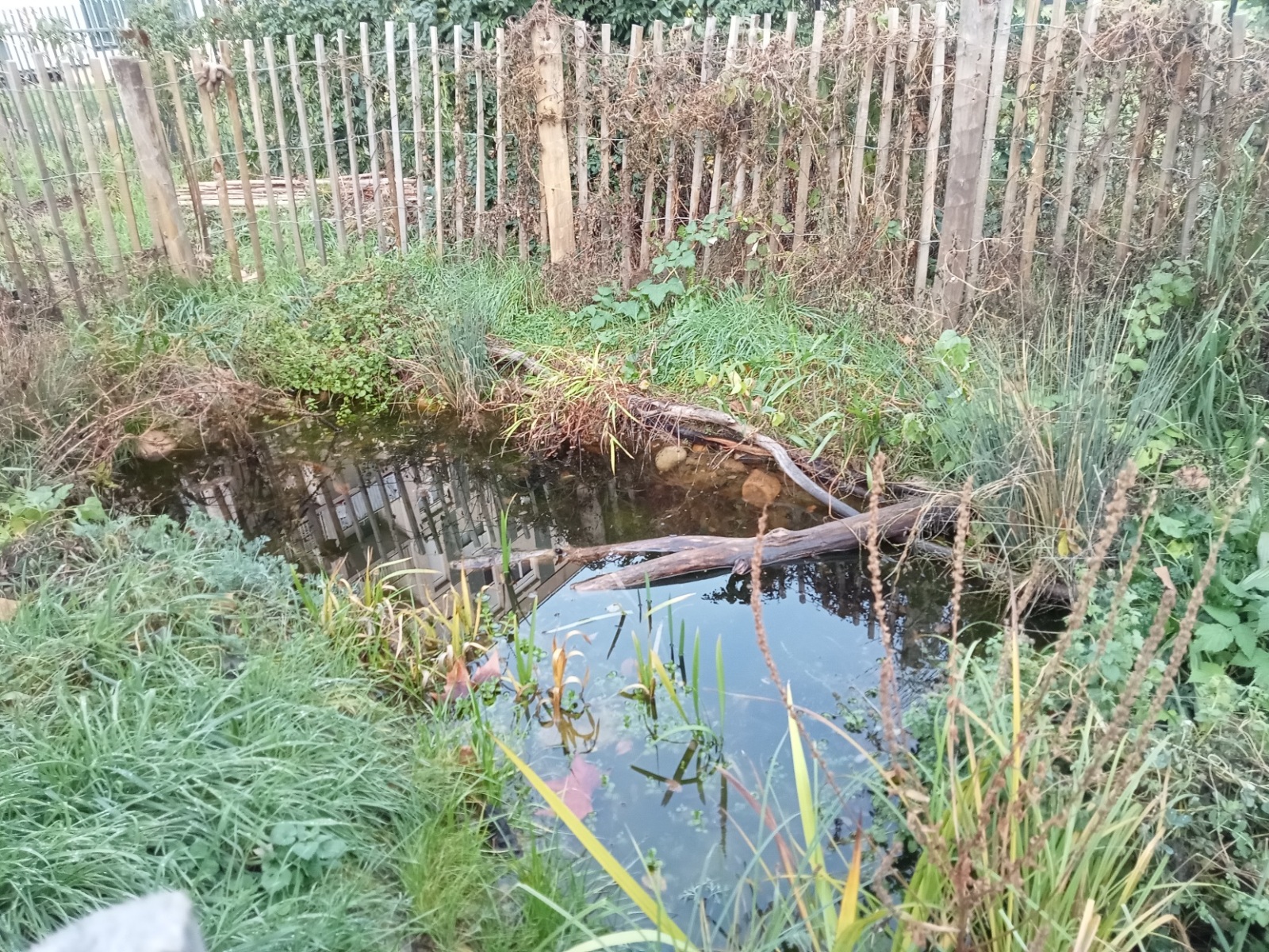 Mare créé dans le jardin partagé "le jardin des 4 saisons" en mars 2025, chantier réalisé par "des espèces parmi Lyon".