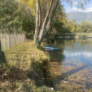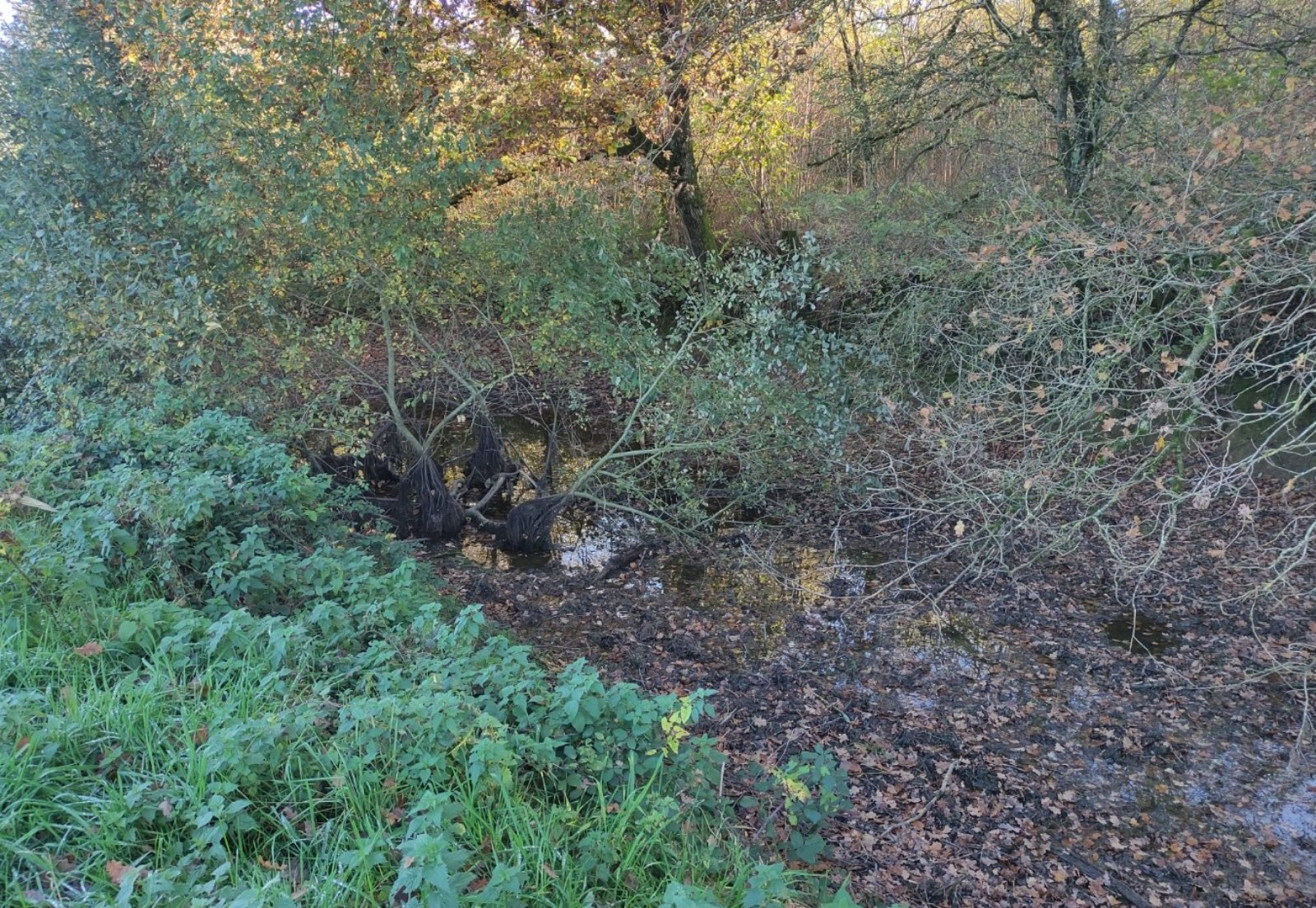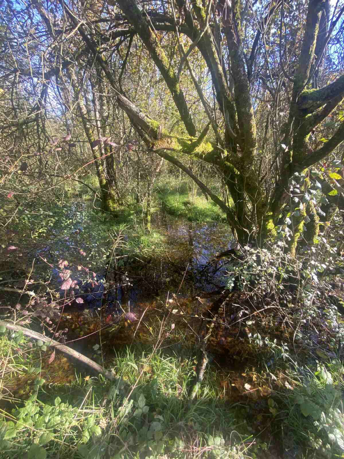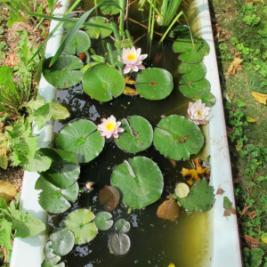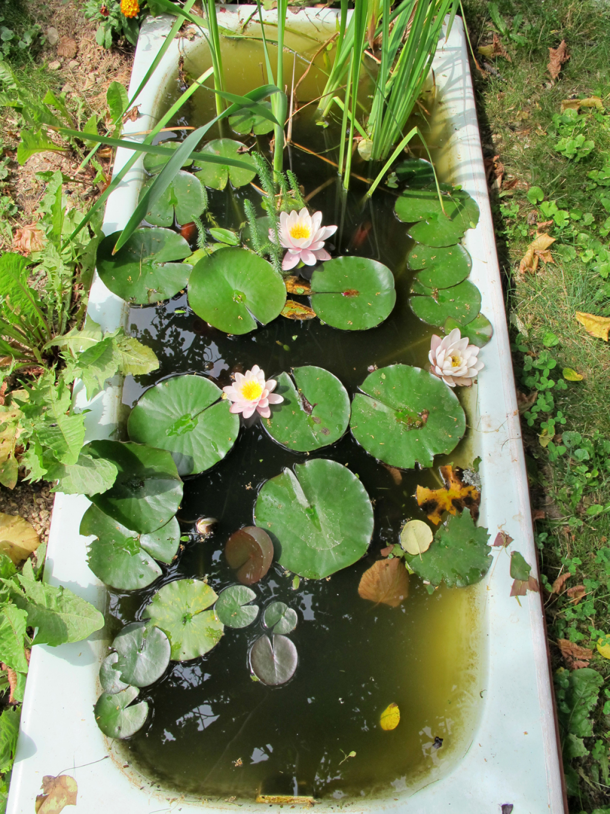 Mare devant ma maison, dans une vielle baignoire . Mise en eau + plantes + 3 poissons rouges : mars 2025