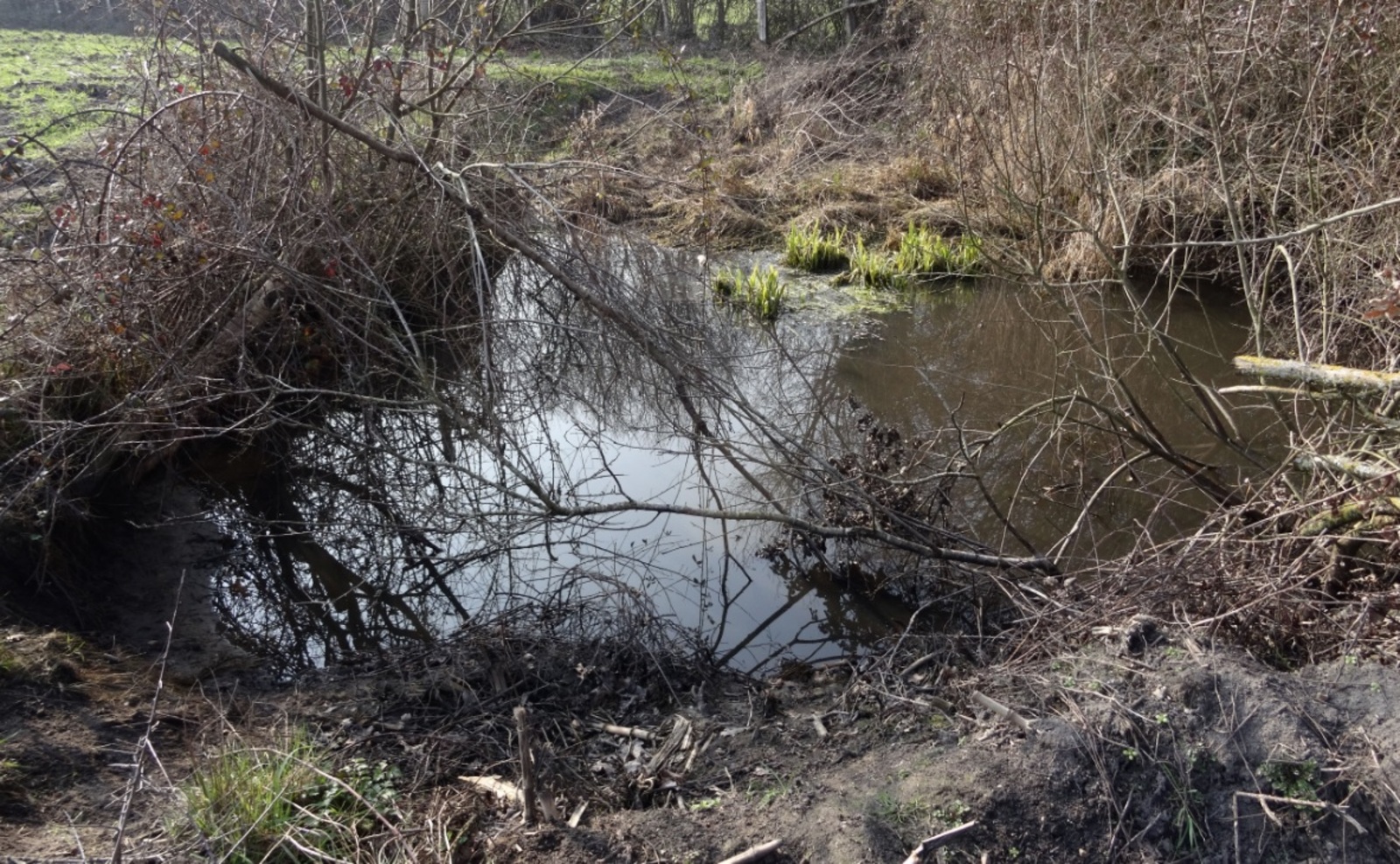 Description En mauvais état fonctionnel, sert aussi de débarras de branches, en partie asséchéé |